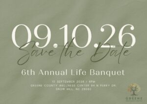 Join us for an inspiring evening as we celebrate life, share stories of hope, and reflect on the impact God is making through Greene Pregnancy Center. Our Annual Life Banquet is a special time to gather as a community, hear powerful testimonies, and partner together in supporting women, men, and families in our area.