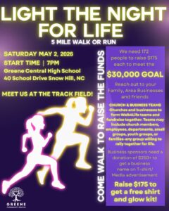Where: Greene Central High School Track Field- 40 School Dr. Snow Hill, NC